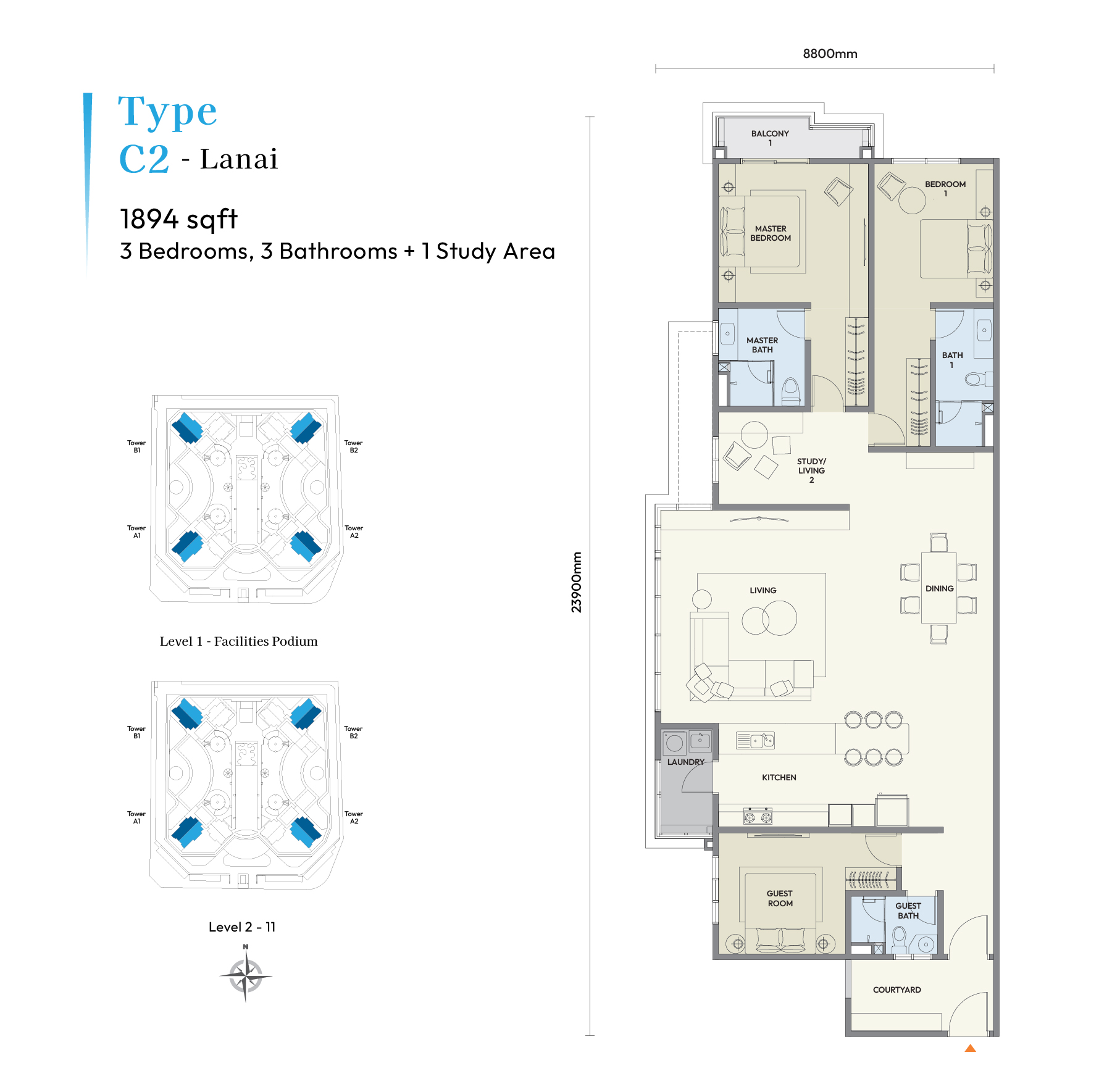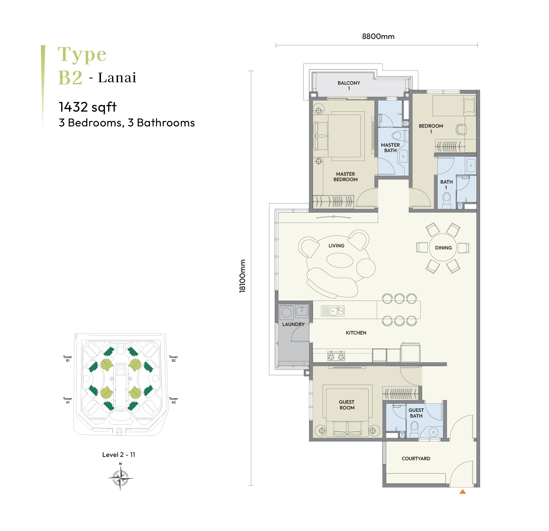 Explore living spaces that go beyond the ordinary, offering a choice between balcony and lanai designs. The balcony, serves various purposes — from nurturing personal garden oases to serene breakfast spots or spaces for rejuvenating yoga. Meanwhile, the expansive lanai seamlessly merges indoor and outdoor living,
