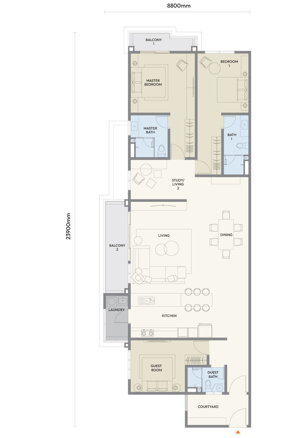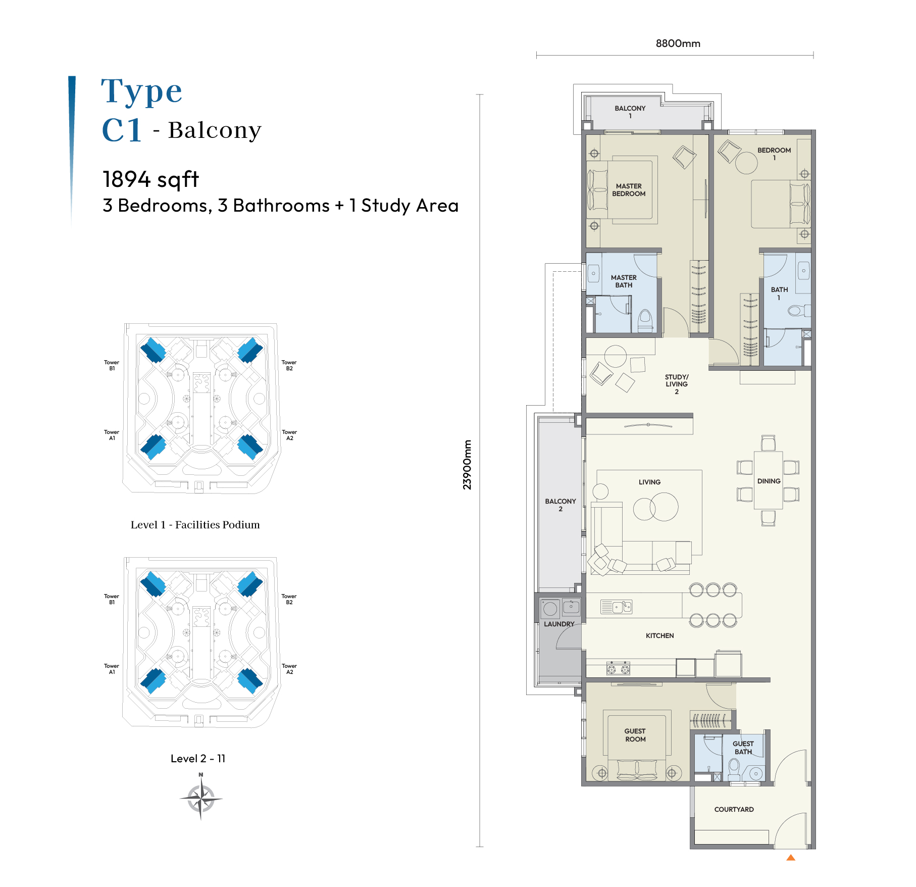 Your gateway to an elevated lifestyle begins with the meticulously crafted floor plans, optimising space and design. Each home intelligently arranged to maximise the view, lighting, and privacy for every resident. The thoughtful articulation of spaces and positioning of units ensures not just a home but an abode resonating with your living preferences.